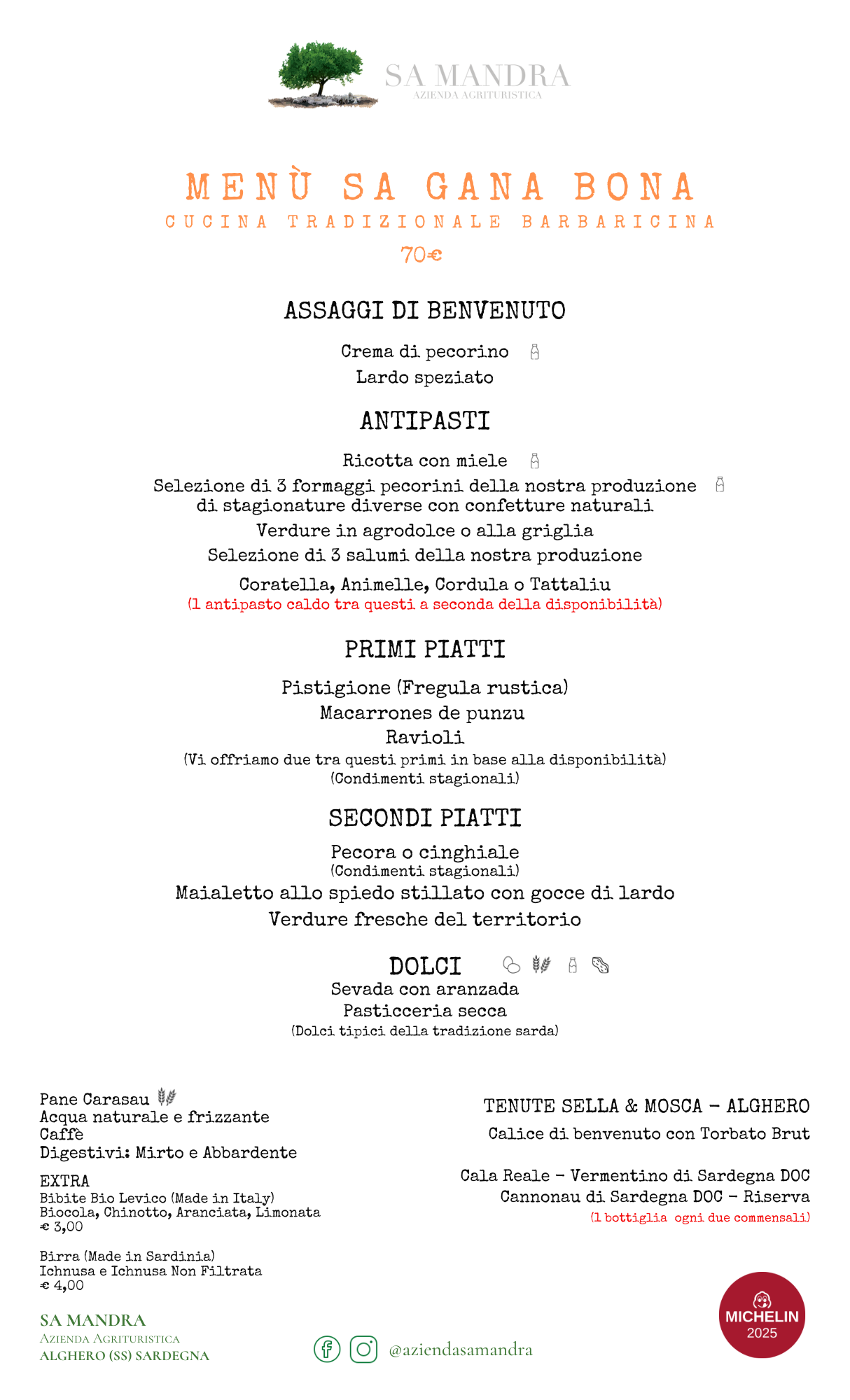 Regala un viaggio culinario alla scoperta dei sapori autentici della tradizione. I nostro menu degustazione «Sa Gana Bona» è un omaggio alla cucina barbaricina, preparata con ingredienti sani e genuini di stagione. Dalla nostra azienda agricola e dai migliori produttori locali provengono le materie prime che compongono i nostri piatti. Il menù «Sa Gana Bona» si arricchisce dei vini del territorio, abbinati alle pietanze genuine per offrire un viaggio sensoriale alla scoperta della Sardegna più autentica.